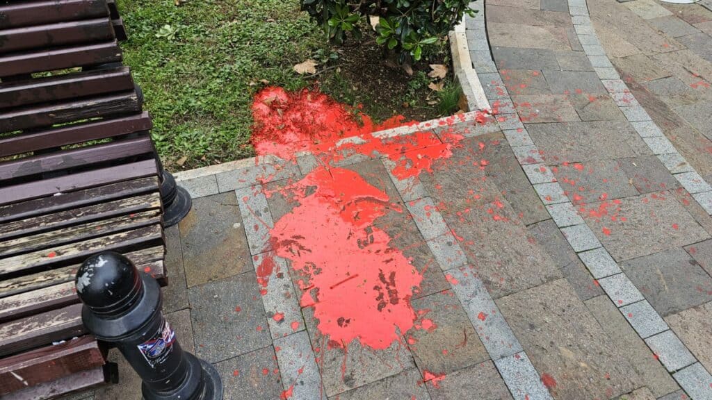 Farba je nanesena i na klupu pored spomenika, kao i po ulici i trotoaru.