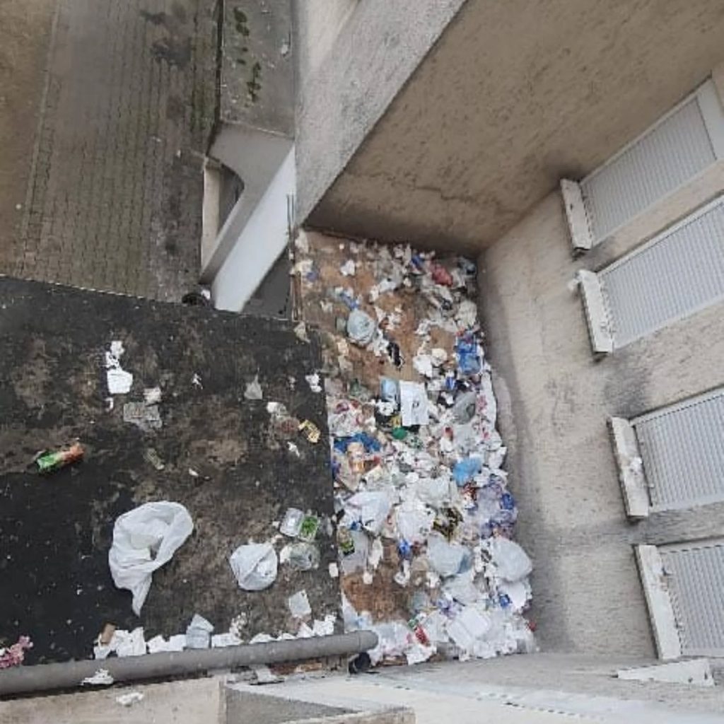 “Obavještavamo javnost da su stanari zgrade H23, preko puta ugostiteljskog objekta „Garden“, u ulici Dinastije Balšića, bacali otpad direktno kroz prozore svojih stanova. Ovakvim neodgovornim ponašanjem otpad se gomilao na nadstrešnici, što nije vidljivo sa zemlje, ali predstavlja ozbiljan komunalni i higijenski problem”, navodi se u objavi tog preduzeća na društvenoj mreži Fejsbuk.