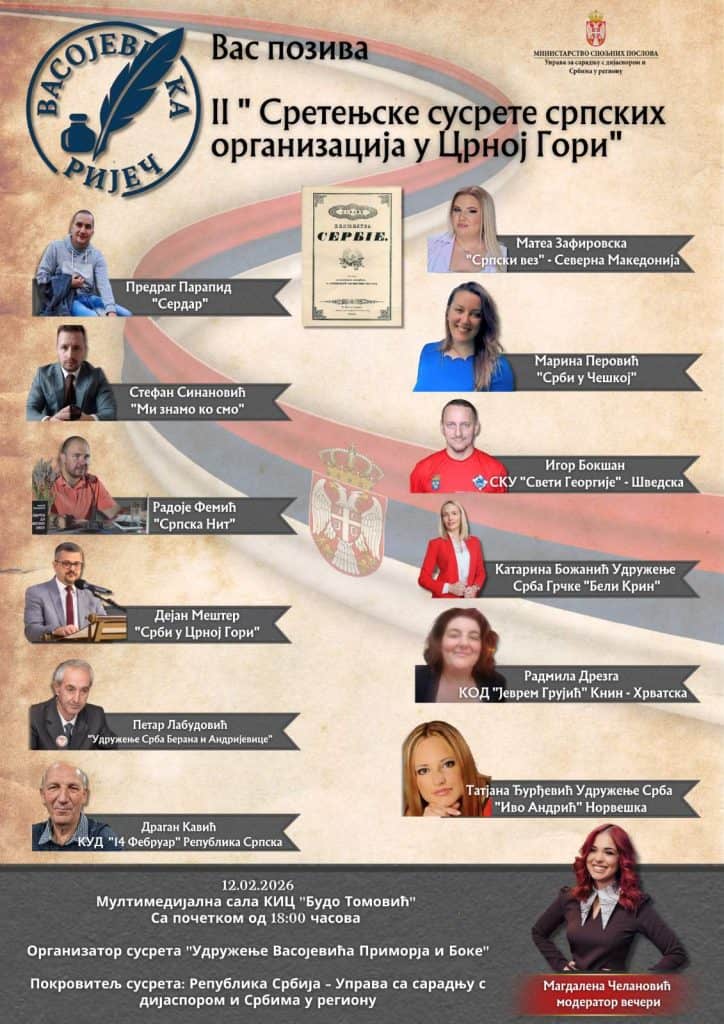 „Sretenje za srpski narod ima snažno istorijsko, duhovno i simboličko značenje, jer predstavlja praznik sabornosti, slobode i nacionalnog buđenja. U tom duhu organizuju se i ovi susreti, sa ciljem da okupe srpske organizacije iz Crne Gore i dijaspore, radi jačanja kulturnih i duhovnih veza, očuvanja nacionalnog identiteta i unapređenja međusobne saradnje“, ističe se u najavi skupa.