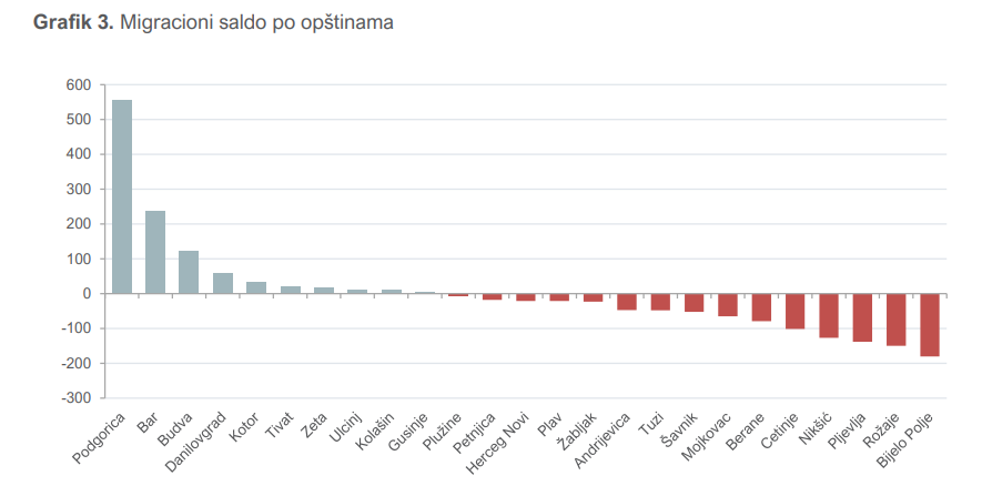 “Razlika između doseljenih i odseljenih stanovnika najveća je u Podgorici i iznosi 555. Najveći negativan saldo zabilježen je u Bijelom Polju i iznosi 180 lica”, dodaju u Monstatu.