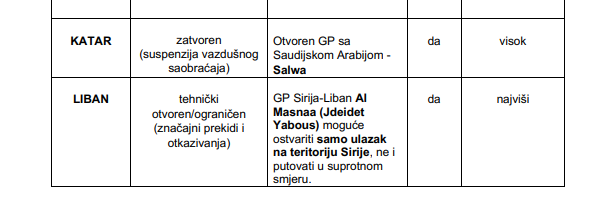 Istovremeno, ukazuju da režim funkcionisanja kopnenih graničnih prelaza u pojedinim državama može biti izmijenjen, uz moguće privremene obustave tranzita, ograničen rad i pojačane bezbjednosne kontrole.