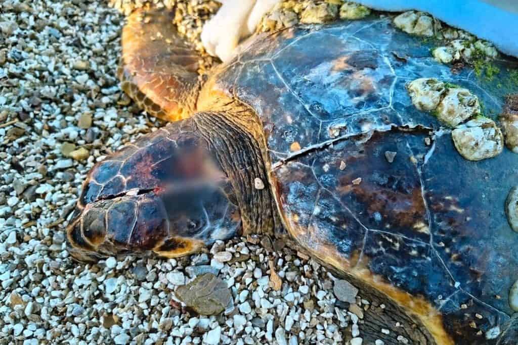 “Životinja je odmah zbrinuta i smještena u karantinski dio Akvarijuma Boka u izuzetno lošem stanju. Nakon veterinarskog pregleda ustanovljeno je napuknuće lobanje i otvorena povreda leđnog dijela oklopa. Prema položaju povreda na glavi i oklopu, jedini mogući uzrok je kontakt s plovilom koje se kretalo velikom brzinom”, saopštili su iz Instituta za biologiju mora.