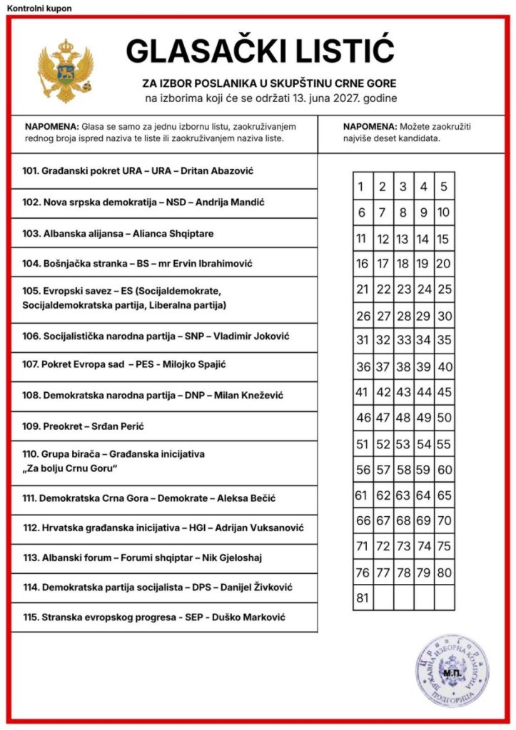 “Usvajanjem zakona o otvorenim listama glasački listić bi se suštinski dijelio na lijevu i desnu stranu. Birač glasa tako što na lijevoj strani glasačkog listića zaokružuje redni broj ispred jedne izborne liste ili zaokruživanjem naziva izborne liste, a na desnoj strani glasačkog listića zaokružuje brojeve najviše do 10 kandidata sa izborne liste za izbor poslanika u Skupštini Crne Gore, odnosno do 7 kandidata sa izborne liste za izbor odbornika u Skupštini opštine, Skupštini Glavnog grada, Skupštini Prijestonice”, objasnili su iz te političke stranke.