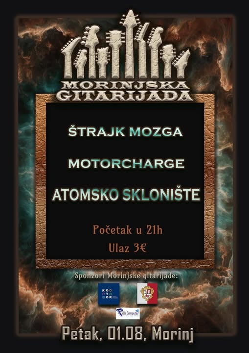 Atomsko sklonište, Motorcharge i Štrajk mozga na „Morinjskoj gitarijadi“ 1. avgusta