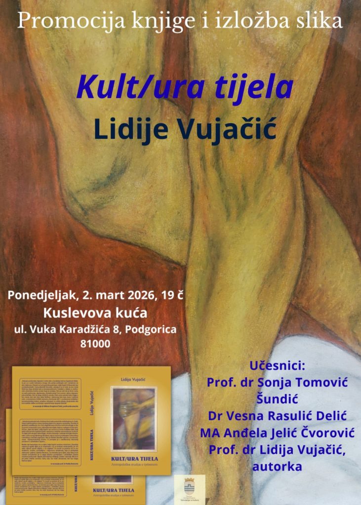 Promocija knjige i izložba slika „”Kult/ura tijela” Lidije Vujačić u ponedjeljak u Kuslevovoj kući