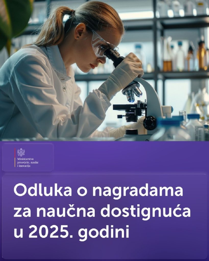 Nagrade za naučna dostignuća dobitnicima će uručiti ministarka prosvjete, nauke i inovacija