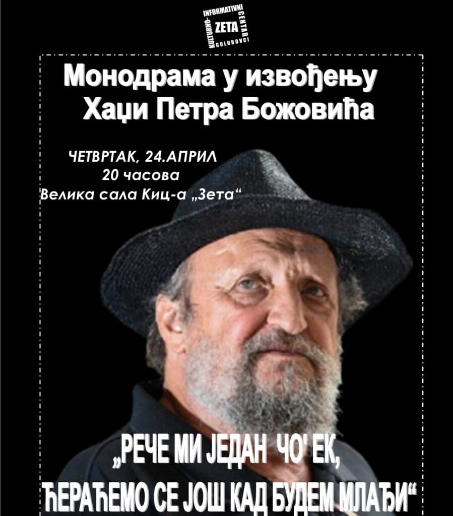 Monodrama Petra Božovića u KIC-u „Zeta“ 24. aprila