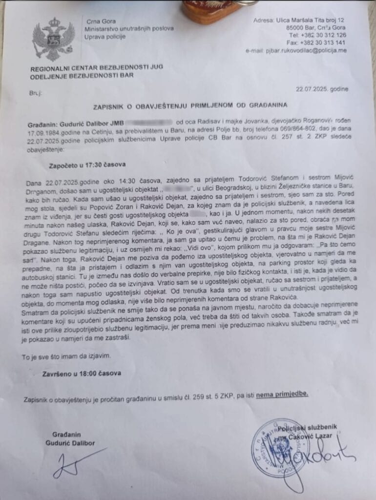 Baranin prijavio policajca: Tvrdi da je pijan omalovažavao njega i sestru