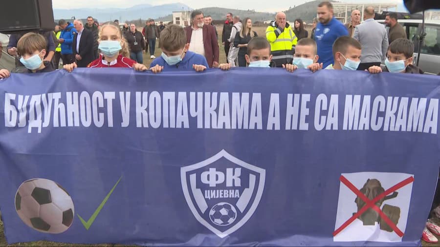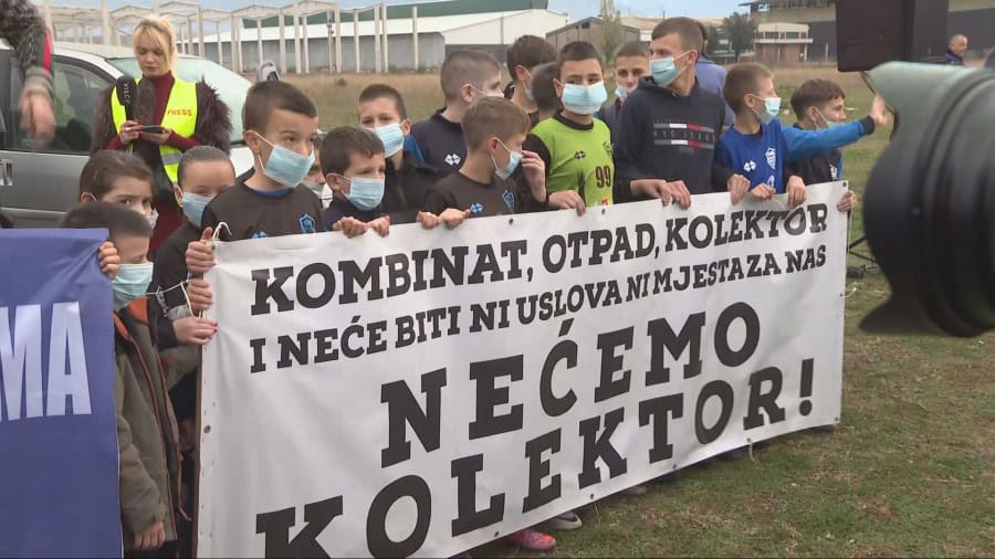 Najmlađi Botunjani držali su transparente “Budućnost u kopačkama, a ne s maskama”, i “Kombinat, otpad, kolektor i neće biti uslova ni mjesta za nas. Nećemo kolektor!”