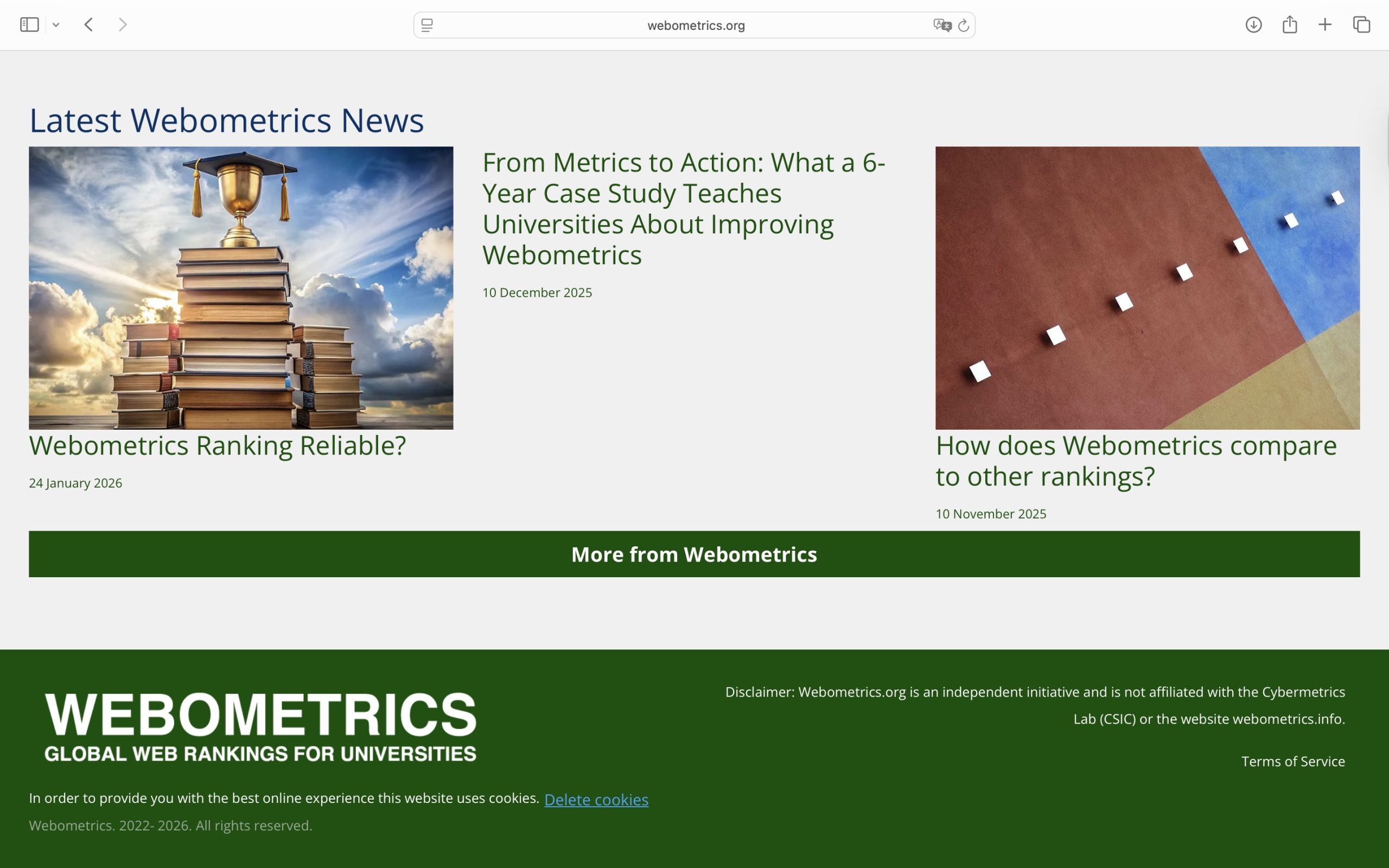 Oni ističu da stranica Webometrics.org, koju je UCG koristio kao izvor, nije relevantna, te ukazuju da se često koristi u svrhe plasiranja fabrikovanih podataka. Prema njihovim riječima, vrijedi skrenuti pažnju da i na toj stranici stoji odricanje od odgovornosti (disclaimer) u kojem se, kako dodaju, jasno navodi da je riječ o nezavisnoj platformi koja nema nikakvu vezu sa CSIC-om.