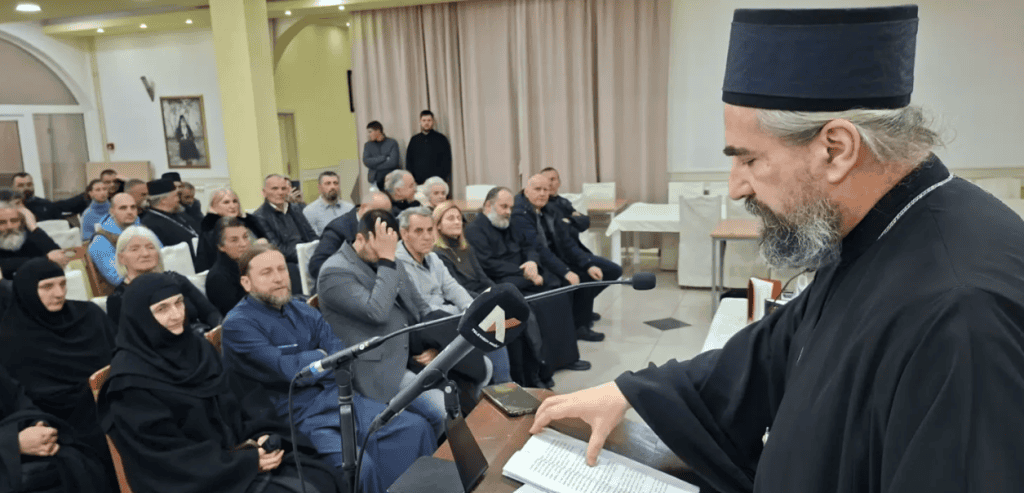 Predstavljanje izabranih djela Mitropolita Amfilohija sveštenik Lekić je ilustrovao čitanjem izvoda iz jedne od knjiga u kojoj se nalazi predavanje mladog studenta Rista Radovića, koje je održao na Bogoslovskom fakultetu u Beogradu 61. godine.