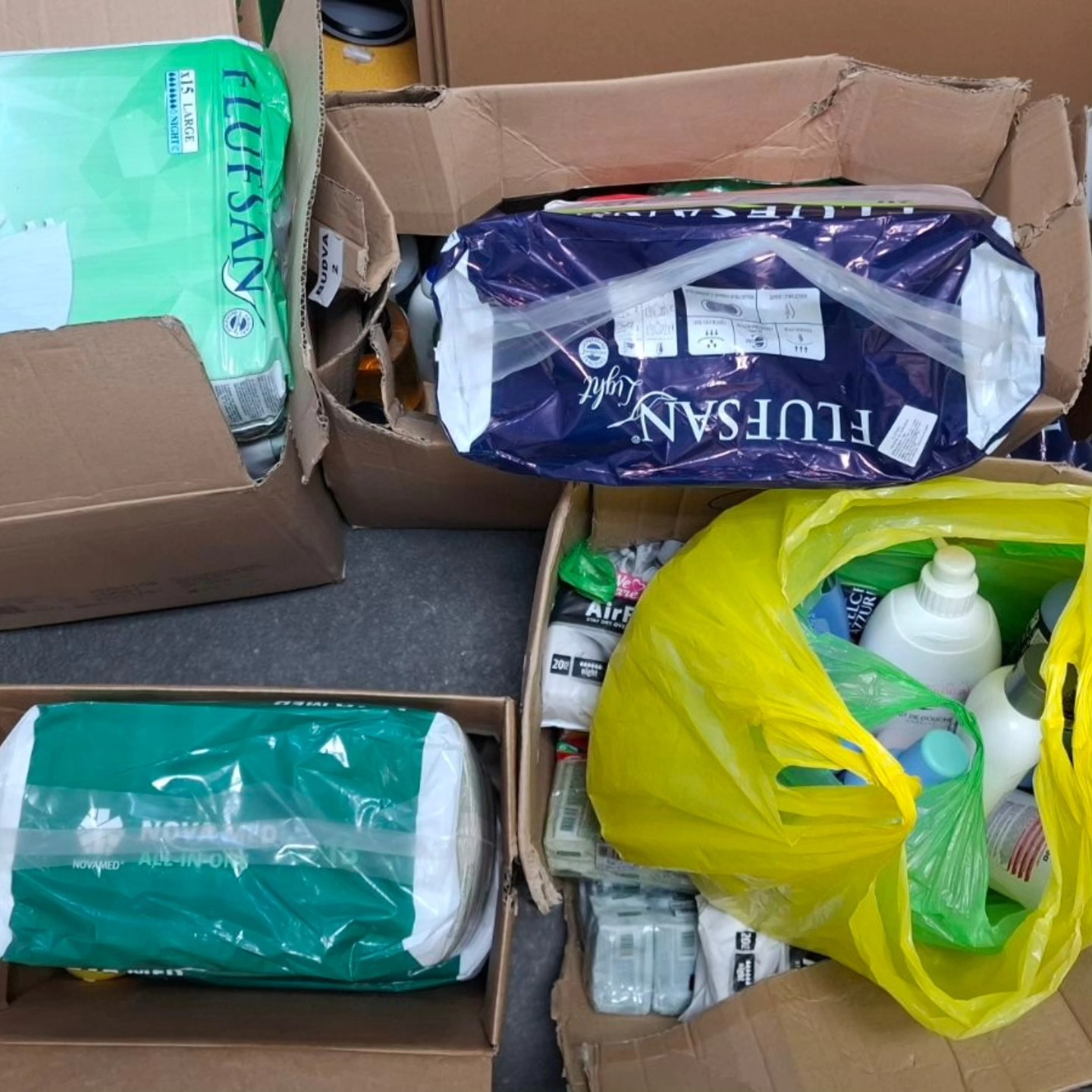 Kako su saopštili iz “Open Water”-a, paketi sadrže pelene, vlažne maramice, kupke, šampone, sapune, pjenu za brijanje, četkice i paste za zube, štapiće za uši, Pavlovićevu kremu, kreme za ruke, flastere, maramice za naočare i ženske uloške.