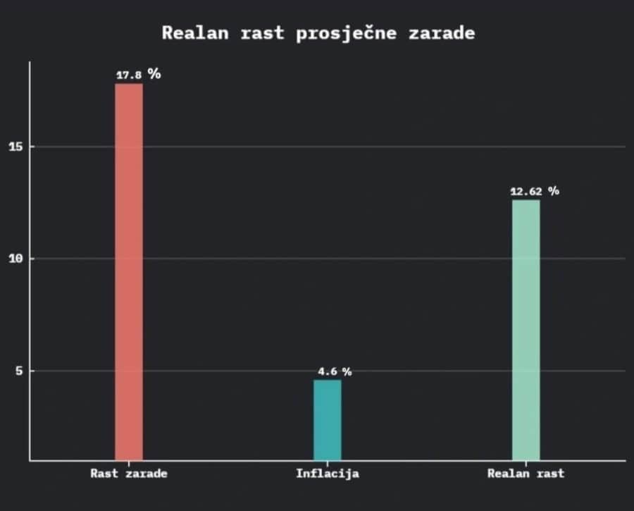 Ovi podaci pokazuju da, uprkos inflacionim pritiscima, standard života građana bilježi stvaran rast. Više sredstava za potrošnju znači da ljudi imaju veći finansijski prostor, što pozitivno utiče na domaću potražnju i ekonomiju u cjelini.