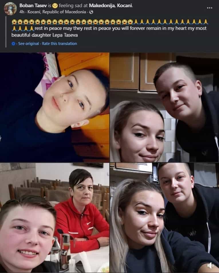 Ona i njen otac izjavili su za makedonske medije da je u klubu bila i Marijina sestra, 25-godišnja Lepa, koja je tokom požara nestala. Lepa je kasnije danas pronađena među poginulima. Njen otac, koji je očajnički tražio u bolnicama u Skoplju, potvrdio je tragičnu vijest: “Nažalost, moja Lepa je među preminulima”, izjavio je skrhani otac.