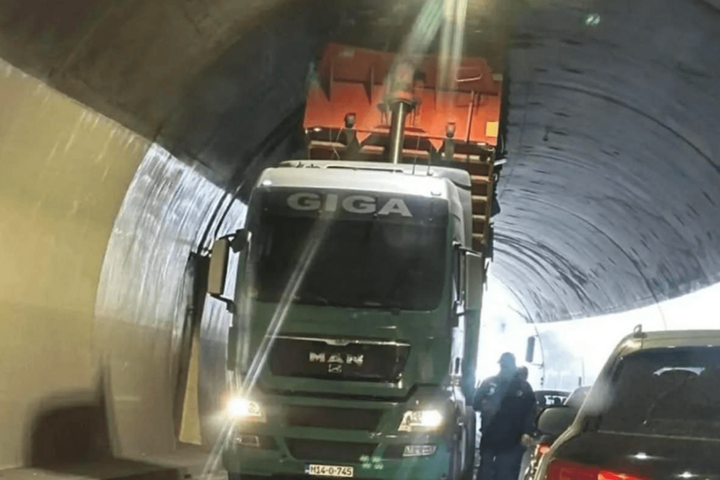 Šleper zaglavljen u tunelu Sozina
