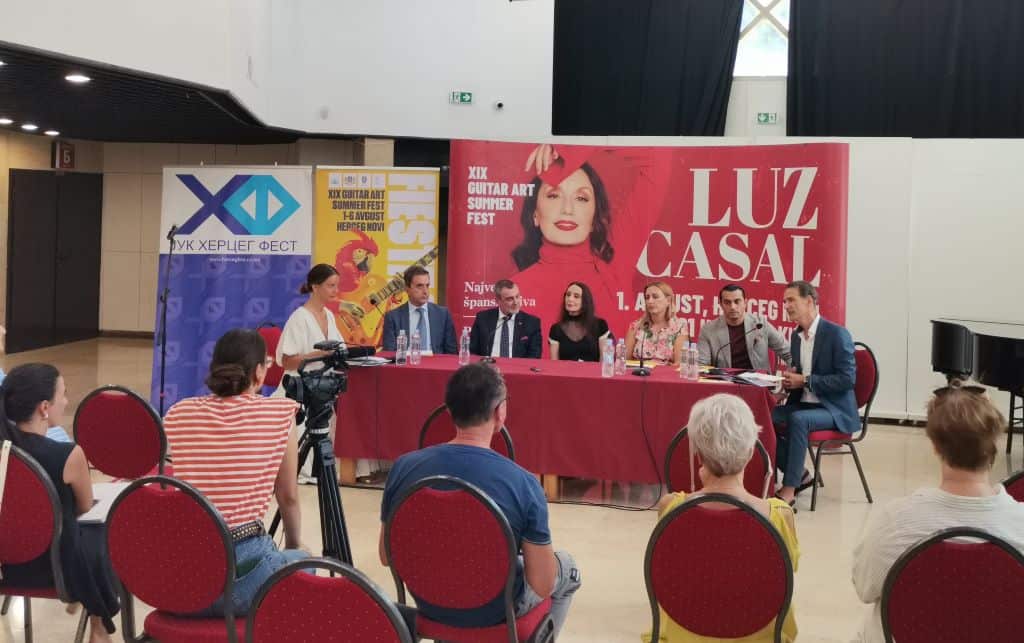 „Lus Casal je veoma poznata – znate je iz filma „Montevideo“, kao i iz Almodovarovih filmova, ali ona je mnogo više od toga. Njena karijera je duža od 40 godina, pjeva rok, ljubavne pjesme, bolero. Ona je veliki umjetnik, a još veći čovjek. Veoma je voljena u Španiji, a zbog načina kako se nosila i izborila sa svojom bolešću postala je primjer svim ljudima koji imaju taj problem. Zbog njenih umjetničkih i ljudskih kvaliteta, kralj Španije joj je dodijelio titulu markize. Zato, kada budete večeras slušali ovu umjetnicu, znaćete da slušate i veoma važnu osobu Španije“, kazao je ambasador Aparico.