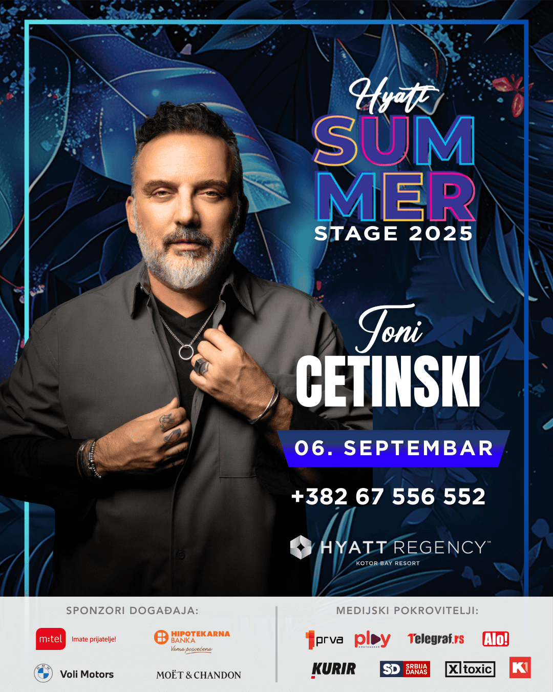 Jedan od najpoznatijih i najvoljenijih muzičara regiona, Toni Cetinski, po prvi put će održati koncert u luksuznom Hyatt Regency Kotor Bay Resortu, čime će ujedno biti zatvorena ovogodišnja sezona prestižnog muzičkog serijala Hyatt Summer Stage.
